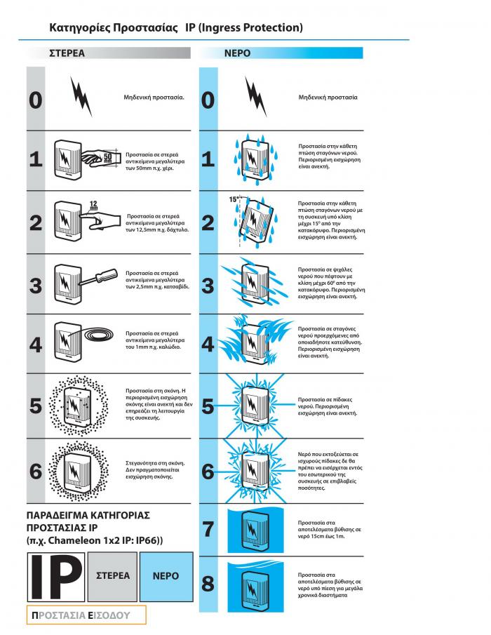 και ταυτόχρονα παρέχει πρόσθετες πληροφορίες σχετικά με την προστασία αυτή. Έχει 2 αριθμούς, ο πρώτος δηλώνει την προστασία της συσκευής από εισχώρηση στερεών αντικειμένων και ο δεύτερος την προστασία από εισχώρηση νερού. Δείτε σχετικό πίνακα (IP Ratings Guide) στη συνημμένη φωτογραφία.