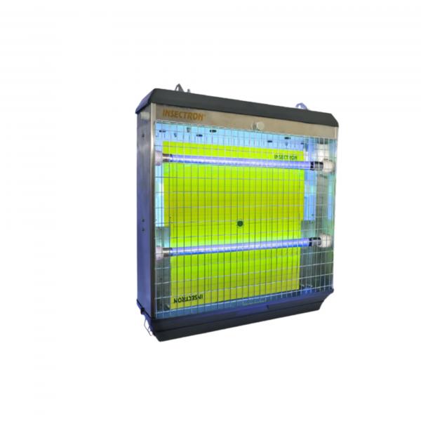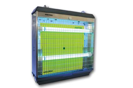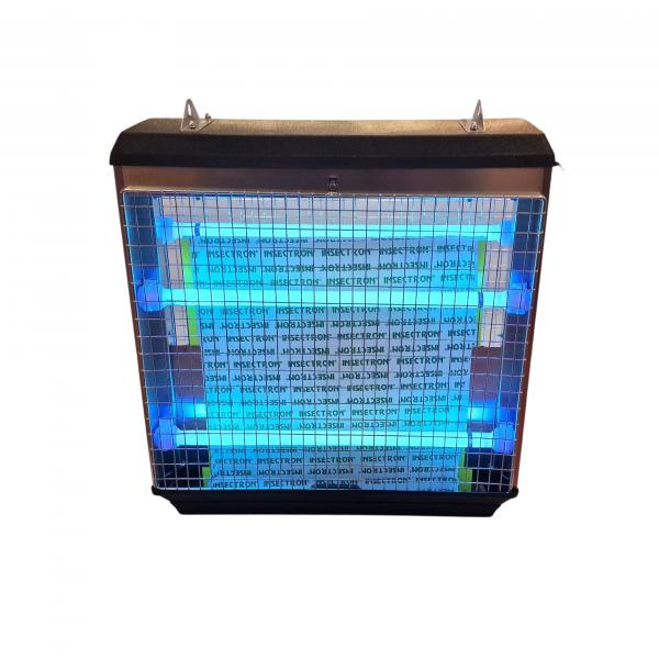 Ηλεκτρική εντομοπαγίδα οροφής, για μεγάλους βιομηχανικούς χώρους έως 400τ.μ. Φέρει 4 λαμπτήρες 18W UV-A με προστασία θρυμματισμού. Είναι κατάλληλη για χώρους με υψηλή υγρασία και σκόνη.