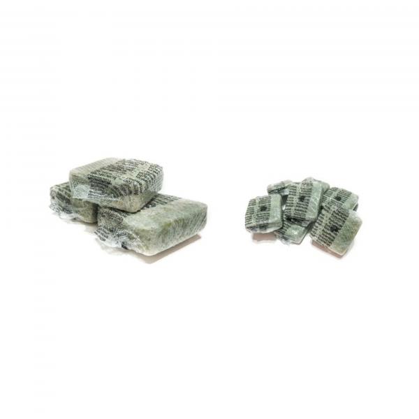 Διατίθεται σε μορφή μαλακού κύβου 20g με τρύπα σε γκρί-πράσινο χρώμα.